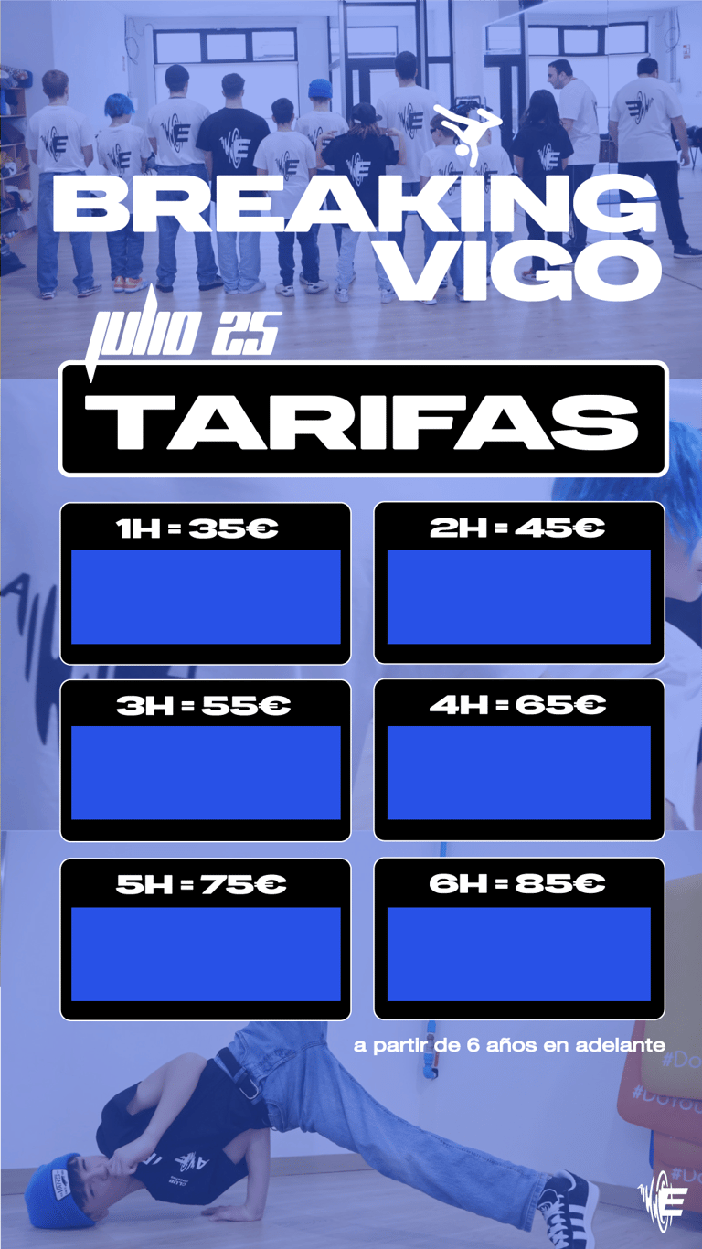 Más de 10 años de experiencia como instructor de breaking en escuelas como DA Vigo y Escuela de danza Mediapunta, así como coreógrafo y bailarin del espectáculo "La Plazuela".